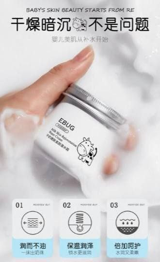 ⚜کرم مرطوب کننده شیر گاو EBUG دارای بافتی سبک و سرشار از ویتامین های مفید برای پوست است از این جمله می توان به ویتامین A اشاره کرد که از شیر گاو تهیه شده.