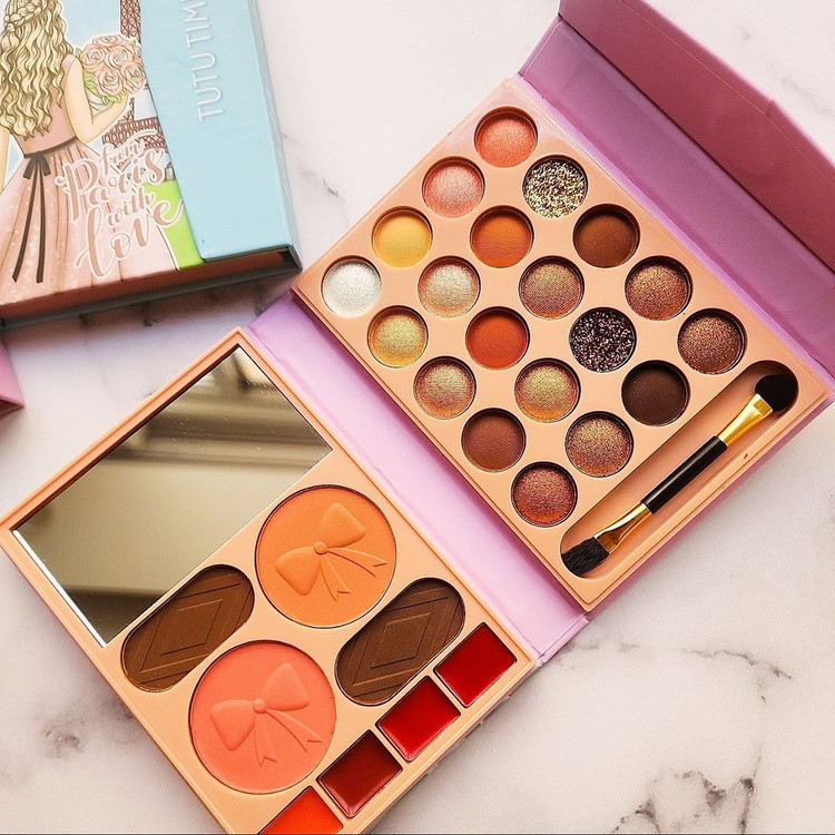 پالت سایه کیفی Paris with love اورجینال چندکاره از برند اورجینال TUTU TIME این پالت جذاب که مناسب سفر و استفاده روزانه هست و کلی پرطرفداره 🍭🍡۳۲رنگ گرم و خشکل گلیتر و مخملی داره 🌸 هایلایتر، رژگونه، سایه ابرو و رژلب و پنکک به همراه براش پد دار 🔆 گزینه مناسب هدیه دادن 💕