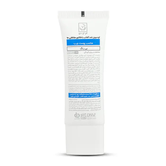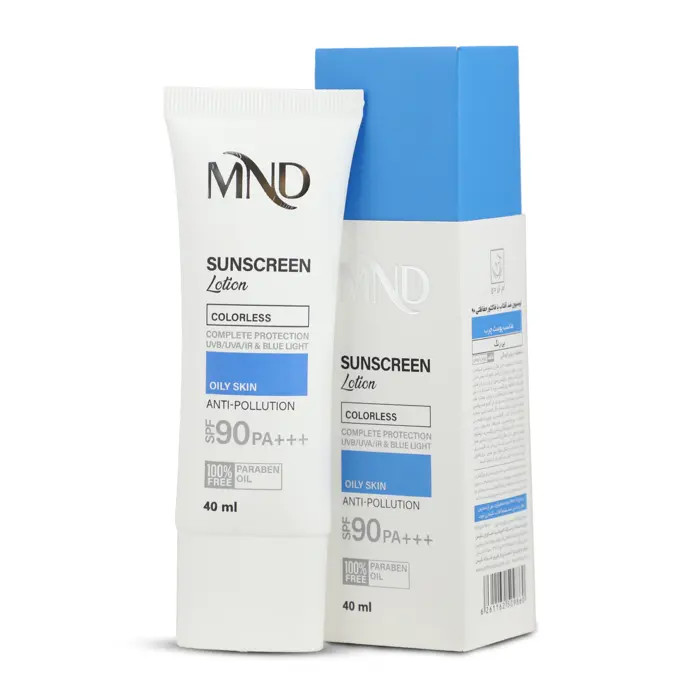 لوسیون ضد آفتاب با فاکتور حفاظتی (/50/30/SPF 90) بی رنگ ام ان دی مناسب پوست چرب